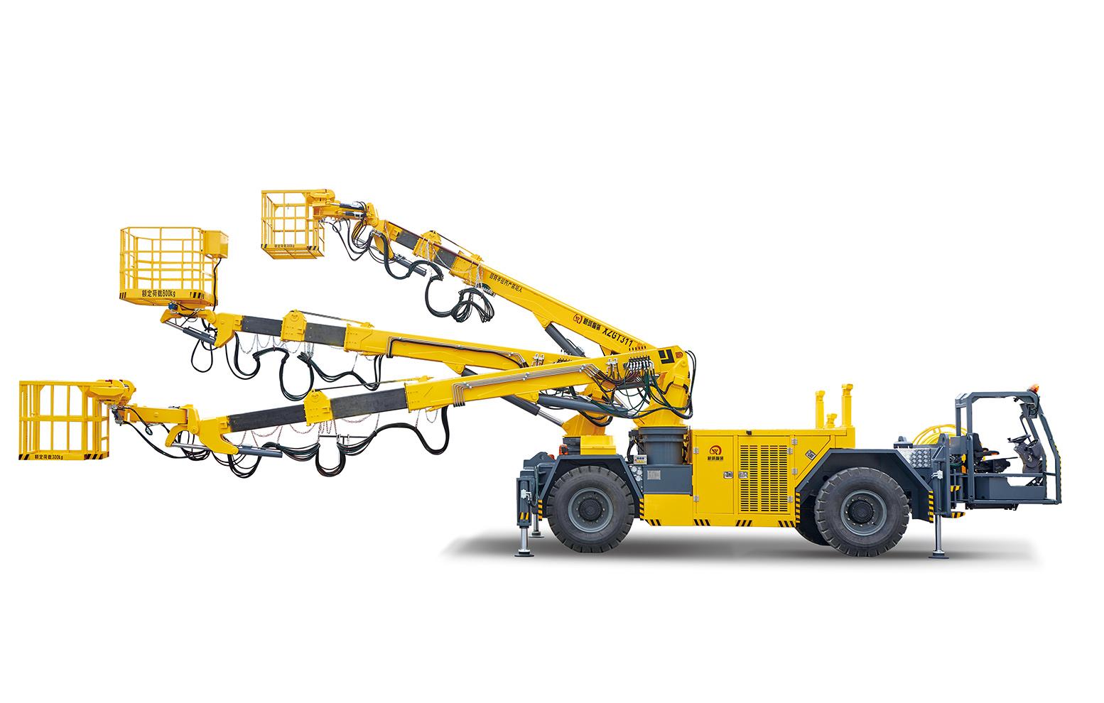 ●三臂全回轉結構,整機結構緊湊,運輸方(fāng)便,轉場快捷;
